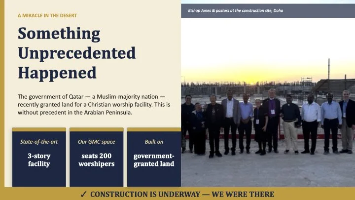 The Mississippi–West Tennessee Conference of the Global Methodist Church has committed to help fund a Global Methodist worship space in Doha, Qatar. That commitment is already in place, and the conference is now responsible for ongoing monthly payments.
